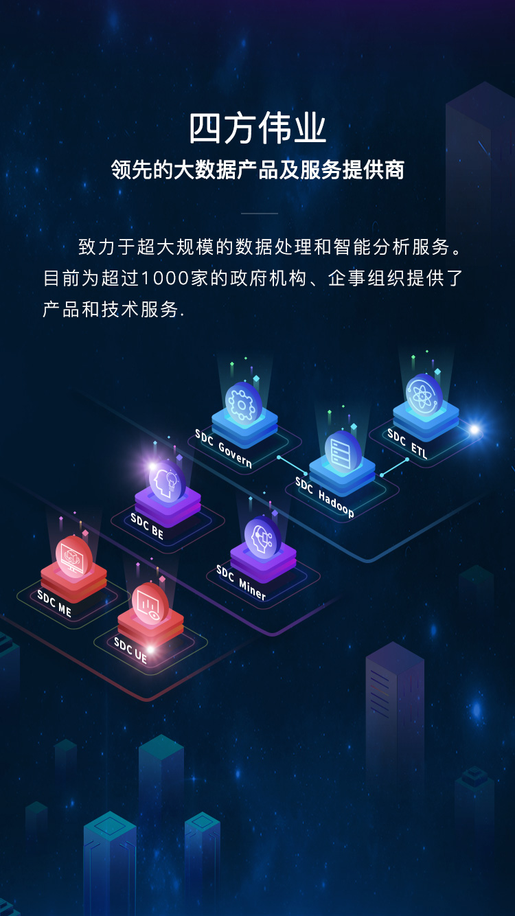 致力于超大規(guī)模的數(shù)據(jù)處理和智能分析服務。目前為超過1500家政府機構、企事組織提供了產(chǎn)品和技術服務。